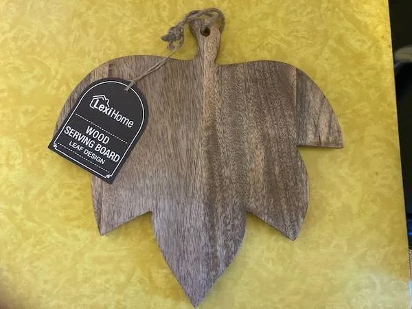 Nice serving board with leaf design and beautiful wood grain, brand new with tags and in unused, giftable condition. 113/4 x 113/4 and 1/2 thick. Made in India. $10. CALLS ONLY please to 503-358-6383. No texts. No email. From a non-smoking home. Thanks for looking.