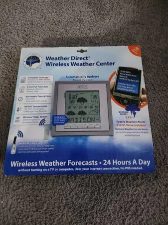 La Crosse Technology Wireless Weather Center Direct Weather Alerts. New and sealed. Call 612-735-8444.