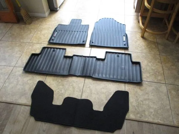 This is a set of 3 genuine Honda/Acura rubber floor mats and 13 rd row carpet floor mat for the 2022-2024 MDX models. They are lightly used and most of the wear is on the drivers mat. They have no foul odors or stains. I am asking $100.00 cash for the set. The last photo shows what these retail for. TEXT or email are best 707-843-2856. No checks or m 1 y orders. I am in Windsor which is about 1 hour and 20 minutes North of the Golden Gate Bridge, pickup will need to take place at my house....