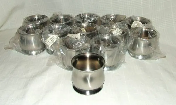 Onieda Stainless Steel Sugar Bowls Hotel Hollowware 8 oz. NEW These 80 unce sugar bowls are brand new, there are 62 available priced at $10 each, or buy the entire lot for $550 These restaurant / hotel quality hollowware is made of 18/8 stainless steel with a brushed finish, the stately curves offer a sophisticated appearance that will look great on the finest of tables. The dimensions are 3 ¼” diameter x 3 high. I have many other collectible, useful, and gift items available, just put y 2525 in the search box to view them. Many items can be shipped with payment made through paypal.Verified Member Easy pickup at my downtown Naperville home, 5 minutes from I 88. Any questions, Call Glenn at 630-989-1964.