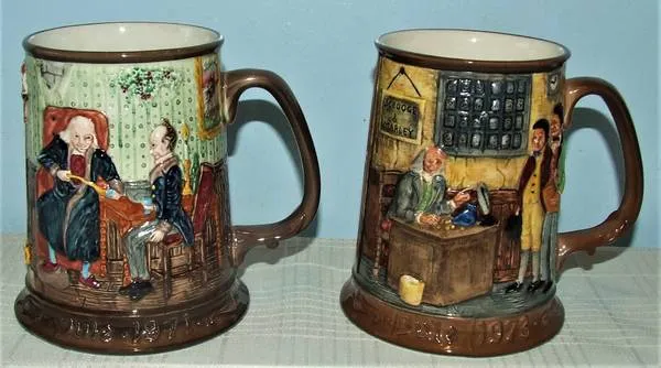 A Christmas Carol 1 st Edition Ltd Ed. Tankard Scrooge Cratchit 1971 & 1973 Royal Doulton Beswick These Christmas Carol tankards are limited editions produced by Beswick of the Royal Doulton group. Both tankards are in good condition, the dimensions are 43/8 diameter on bottom x 5 high. These are priced individually at $25 each or buy both for $40. I have many other collectible, useful, and gift items available, just put y 2525 in the search box to view them. Many items can be shipped with payment made through paypal.Verified Member Easy pickup at my downtown Naperville home, 5 minutes from I 88. Any questions, Call Glenn at 630-989-1964.