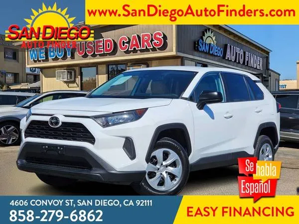 Enter this to see more images plus all other inventory we have available: http://lyv.cc/A 5 ZSD San Diego Auto Finders 4606 Convoy Street San Diego, CA 92111 Ask for: Sales main:858-279-6862 San Diego Auto Finders Ask for: Sales 858-279-6862 4606 Convoy Street San Diego, CA 92111 Description: Step into our 1 Owner 2022 Toyota RAV 4 LE AWD in White, and set your sights on better adventures! Motivated by a 2.5 Liter Dynamic Force 4 Cylinder delivering 203 hp matched with an 8 Speed Direct Shift Automatic transmission. This All Wheel Drive SUV also offers terrain management, nimble handling, and the ability to achieve nearly 34 mpg on the highway. Bold lines and a dramatic grille set the t 1 for RAV 4 styling, while LED lighting, chrome exhaust outlets, and a rear spoiler add a touch of sporty sophistication. Our LE cabin inspires confidence with its comfortable fabric seats, a multifunction steering wheel, a filtered climate-control system, keyless entry, a 4.2-inch driver display, and technology for staying ahead of your busy days with ease. A 7-inch touchscreen and voice control help you connect at will with your choice of Android Auto, Apple CarPlay, WiFi compatibility, Bluetooth, and Amazon Alexa compatibility. The 6-speaker sound system lets you listen to your favorite tunes or talk, too. Toyota Safety Sense technology helps take care of you as you explore your world with a backup camera, adaptive cruise control, lane-keeping assistance, forward collision warning, automatic braking, pedestrian detection, and more. Roomy and versatile, our RAV 4 LE is a daily driver that can do a lot more! Save this Page and Call for Availability. We Know You Will Enjoy Your San Diego Auto Finders Test Drive Towards Ownership! Options: 50 State Emissions Fleet Credit White Basic Information: Stock Number: 26147 VIN Number: 2 T 3 F 1 RFV 4 NC 258556 Style Name: AWD LE 4 Dr SUV Make: Toyota Model: RAV 4 Model Year: 2022 Type: SUV Vehicle Trim: Dont Miss It, Call 8582796862 Interior Color: Nutmeg Exterior Color: White Body Type: SUV Engine: MPG Automatic City: 27 MPG Automatic Highway: 34 Engine Description: 2.5 L 4 Cylinders Fuel Type: Gasoline Fuel Induction: DI Valves Per Cylinder: 4 Aspiration: Naturally Aspirated DriveTrain: 4 WD Type: On Demand Transmission: Automatic Wheels Rims: Steel Wheels Spare Rim Type: Steel Drive Train Type: All Wheel Drive Suspension: Independent Suspension: 4-Wheel Stabilizer Bar: Front And Rear Instrumentation: Clock External Temp Low Fuel Level Tachometer Roof and Glass: Front Wipers: Intermittent Privacy Glass Rear Defogger Rear Wiper: Intermittent, Auto-On In Reverse, With Washer In Car Entertainment: Antenna Type: Diversity, Mast Audio System: AM/FM, Voice Operated, Touch Screen Display Speakers: 6 Seats: Drivers H 8: Manual Seating Capacity: 5 Front Seat Type: Bucket Upholstery: Cloth Center Armrest Folding: Split, Flat Convenience: Center Console: Front Console With Armrest And Storage Cupholders: Front, Rear Overhead Console: Front Power Outlets: 12 V Rear, 12 V Front, USB Front, USB-C Front Seatback Storage Steering Adjustment: Tilt And Telescopic Steering Power: Variable/Speed-Proportional Steering Wheel Control: Audio, Cruise Control, phone, Multi-Function, Voice Control Power Mirrors Power Door Locks: Auto-Locking Windows: Power Windows Comfort: Air Conditioning Air Filtration Trunk Lights Center Console Trim: Simulated Alloy Dash Trim: Simulated Alloy Door Trim: Simulated Alloy Reading Lights: Front, Rear Shift Knob: Urethane Steering Wheel Trim: Urethane Vanity Mirrors: Dual Illuminating Features: Aux Transmission Cooler Bumpers: Body-Color Safety: NHTSA Passenger Grade: Excellent NHTSA Driver Grade: Good NHTSA Side Impact Front Grade: Excellent NHTSA Side Impact Back Grade: Excellent NHTSA Roll Over Resistance Rating: Good ABS: 4-Wheel Anti Theft System: Vehicle Immobilizer Brake Assist Safety Locks Daytime Running Light: LED Headlights Auto Delay Front Headrests: 2, Adjustable Rear Headrests: 3, Adjustable Safety Stability Control Driver and Passenger Airbag Side Airbag Stability Control Dimensions: Front Head Room: 37.7 Inches Front Hip Room: 54.3 Inches Front Shoulder Room: 57.8 Inches Front Leg Room: 41.0 Inches Rear Head Room: 39.5 Inches Rear Hip Room: 47.7 Inches Rear Leg Room: 37.8 Inches Rear Shoulder Room: 56.4 Inches Luggage Capacity: 37.6 Cu.Ft. Maximum Seating: 5 Length: 180.9 Inches Width: 73.0 Inches H 8: 67.0 Inches Wheelbase: 105.9 Inches Ground Clearance: 8.4 Inches Max Gross Vehicle W 8: 4610 Lbs. Curb W 8: 3510 Lbs. 2022 Toyota RAV 4 Dont miss it, Call 8582796862 SUV Price: $20,996.00 A 27 FBAFAEA 464 DBBB 650 D 168074 EE 06 C 4078579311956561 Toyota RAV 4 Dont miss it, Call 8582796862 Toyota RAV 4 Dont miss it, Call 8582796862