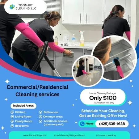 We are TIS SMART CLEANING,LLC.🧹🛏️ We offer residencial and commercial cleaning, seattle and surrounding for more than 5 years. Family owned company with lots of reviews, instagram, site and LLC. We are here to help YOUR needs, contact us now to schedule your first cleaning and to get a free quote. SEE PHOTO CHART FOR STARTING PRICE🧼 *Property managers/owners we are having a discount for weekly office or building cleaning, contact now!* TEXT OR CALL:425-535-1638 MARIA Instagram: @tissmartcleaning website: tiscleaning.com