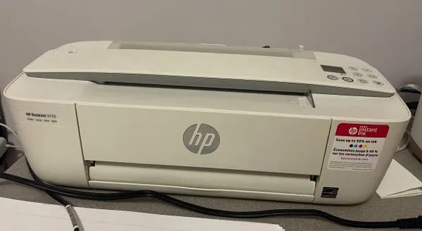 Hp desk jet WiFi model 3755 open box never used . All in 1 print, copy, scan & web. Compact unit easy to move from different areas if needed. If this is posted it is available. I do not text calls only 847-431-9196