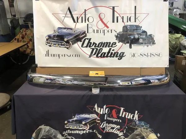 1957 CHEVROLET REAR BUMPER ENDS 500.00 EXCHANGE CORES OEM GM PARTS NEW CHROME PLATING ATBUMPERS.COM 29699 PACIFIC ST HAYWARD CA 94544 CALL 510-881-1886