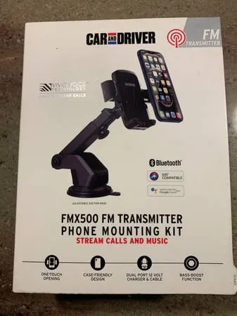 Car and Driver Phone Mounting kit FM Transmitter Stream Calls and Music with bass-boost Function It is available as long as you see this ad.