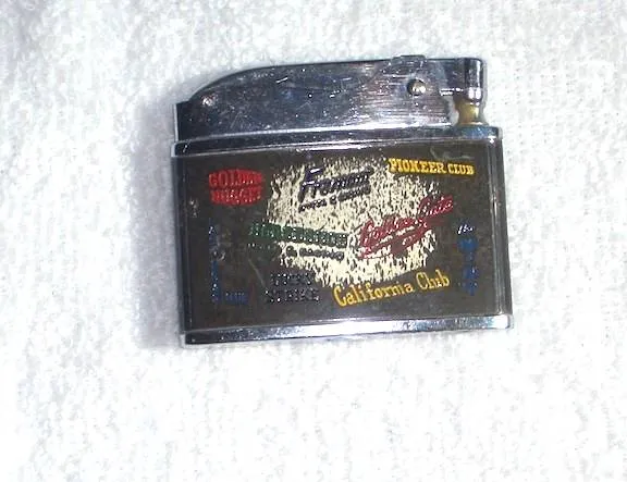 Please email your phone number and I will call you back. 1950s 1960s Las Vegas Casinos Cigarette Lighter: The Mint Fremont Horseshoe Golden Gate Lucky Strike Pioneer Club California Club Golden Nugget Las Vegas Club