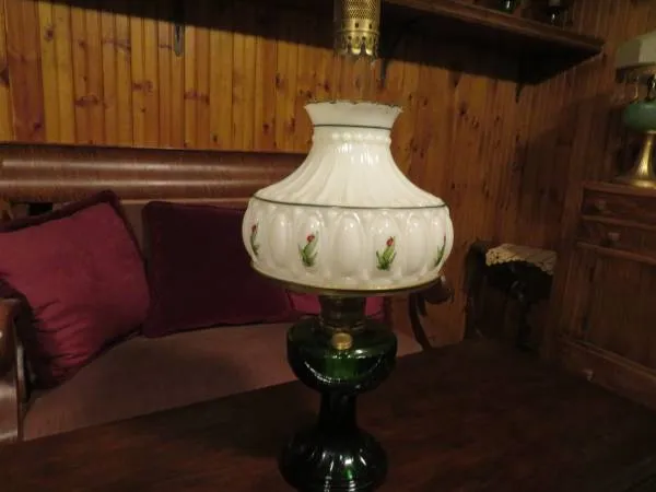 This listing is for an Aladdin green Washington Drape Oil Lamp. It comes with the insect burner attached to the chimney. I am asking $250.00 for it. I live 32nd and Randolph Street in Lincoln Nebraska. If interested please call me. I only have a landline so I cannot receive text messages.