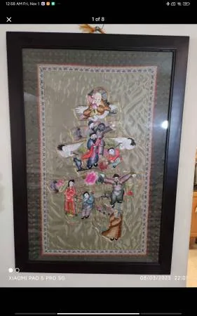 Chinese traditional Embroidery art of longevity Celebrating by the immortals, large size :33 inches x 23 inches. With large glass frame. 寿字刺绣图群仙祝寿。 9 immortals , 4 bats, 3 cranes. 9 位神仙 4 只蝙蝠 3 只仙鹤. Ask:$48,firm. here is the community address : 10724 West Drive, Fairfax , VA 22030 phone: 703-395-6029.text. thanks searching my number 703-395-6029 to see my other stuff for sale.