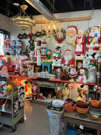 100s of Holiday Blow Molds in stock -- Christmas -- in downtown Jordan MN -- at Alleyway Vintage Warehouse -- address is shown on the yellow business card in this listing -- OPEN SATURDAYS and SUNDAYS 11-3pm or by appointment --- Cash Only -- you must come into the warehouse to check out the conditions and prices of the blow molds -------- I also have a collection of vintage Municipal Street Pole Decorations -- 4 foot Candles are sold extra at $339 each pair) --- Reindeer and santa in sleigh set $1,700