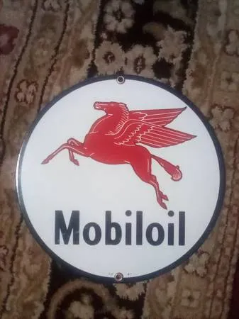 Vintage - 12-41 - Mobiloil Pegasus Pump Porcelain Sign Must call it Text Only - 361-219-3568