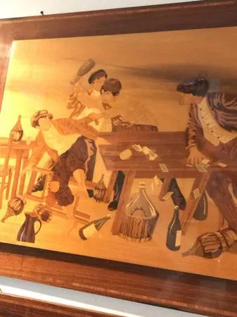 2 Marquetry Inlay Gretaux 3 Vintage wood German Gamblers 215-317-5300 Reduced from $1000 each now $700.-each 2 locations, Ocean City, New Jersey, and pier 3 Columbus Blvd., Philadelphia