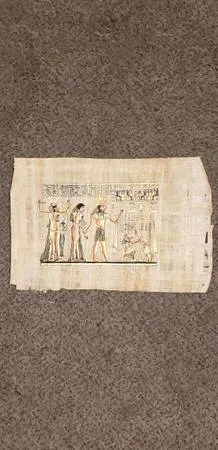 EGYPTIAN HAND PAINTED PAPYRUS PAINTING - it measures 9 x 14 - please text or call 805-635-6083 as I do not check my emails often and no codes - thank you for looking.