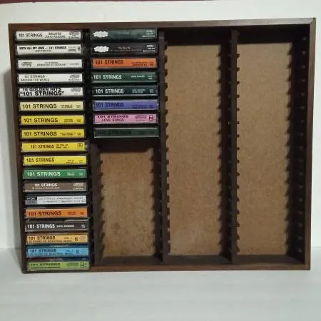 Have a vintage wooden cassette holder 72 tape capacity can use stand al 1 or hang it on a wall. It comes with 26 Tapes Featuring 101 Strings. All in good shape from a smoke free home. $15 for it all. If interested or have questions please call Chad 606-521-4055 thanks