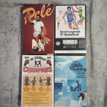 Have 4 Rare Sports Betamax Tapes for sale in good condition. They have been tested, good picture and sound. Family owned bought new years ago. Not rental copies. From a smoke free home $20 for the set of 4 Pele the master and his method Great legends of basketball 1882 to 1929 the legendary champions Boxing In search of skiing Phone Calls preferred & is Easier and faster for me thanks Chad (606) 521 - 405 five