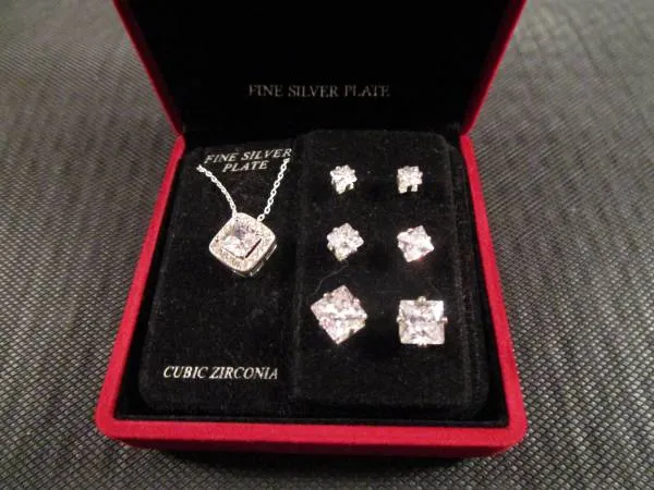 New in the box Danecraft necklace and 3 pair of earnings set for sale. Comes in a lighted red velvet box . It was originally $69.99 and asking $25.00 for the set. You can call 608-781-1961. Please leave a message or text and we will get back to you . If it posted it is for sale, thanks.