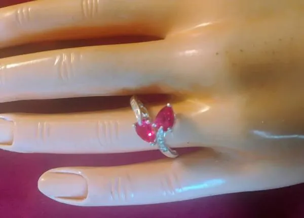 925.Silver 2 Pear Shaped Glass Ruby Stones Ring for 50 dollars please call me at 786[663/0422