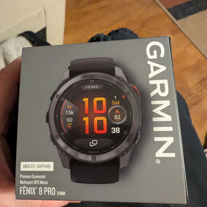 Factory sealed brand new never opened 800 obo Bundle Includes: Garmin Fenix 8 Pro, 51mm, AMOLED Display, Premium Connected Multisport GPS Smartwatch, inReach Technology, Sapphire, Carbon Gray DLC Titanium with Black/Pebble Gray Silicone Band + USB 3.0 to type-C Female Adapter Space Gray + USB Charging Adapter + Microfiber Cleaning Cloth + P-Bank Battery Rugged AMOLED Design with LED Utility: Built for demanding conditions, Fenix 8 Pro GPS Smartwatch features 1.4" scratch-resistant AMOLED displa