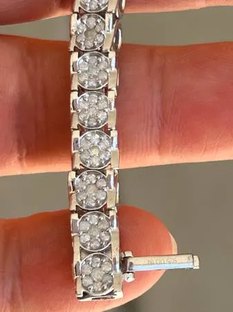 Brand new, open box. 3 CT. Elegant authentic round cluster tennis bracelet in 925 Sterling silver. 5 mm. 7 push button clasp for safety. In perfect new condition. Call: 619-569-9995.