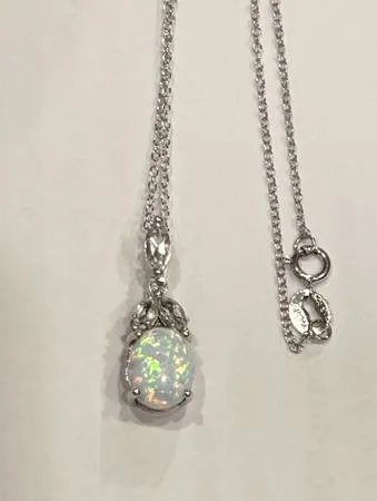 A beautiful opal necklace with 18 long chain. In 925 sterling silver. Great gift for any occasion. Call: 619-569-9995.