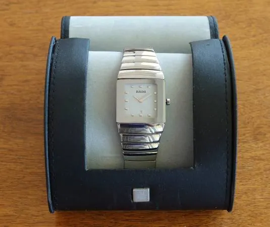 NEW IN BOX BRAND NEW - NEVER USED RETAILS FOR $2000+ THE CLASP IS TITANIUM (for lightness & strength). THE WATCH IS MADE OF HIGH-TECH CERAMIC. This was/is revolutionary, because its the polished version of the same material used for the tiles on the underside of the Space Shuttle, to be able to withstand reentry into the Earths atmosphere. The reason Rado pioneered its use on their Sintra watches 3 decades ago, is because unlike stainless steel (or any other metal), besides being super-light, it will literally NEVER scratch. Period. I know this for a fact from personal experience, because Ive had one for 25+ years (which is always on my wrist & you can see for yourself), with which Ive done everything you can imagine (including high-dive & deep-dive)...its still literally so perfect & spotless, it looks like I bought it yesterday. Once you wear such a watch, everything else will seem odd & bulky. I bought this one for a very close friend many years ago, but he passed away before I gave it to him, so its time to sell it. Please call for questions. FYI, I delete the post as soon as I sell the item.