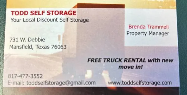 Todd Self Storage takes pride in offering a simple and hassle-free self storage experience for all of our customers. We make sure our storage units are clean, secure, and ready to rent. We offer a variety of storage unit sizes to make sure we can accommodate your self storage needs. You can reserve your unit online and we have online bill pay available 24/7 to make your experience quick and easy. Feel free to look at our available storage units and rent online. Please send us an email, text message or give us a call if you have any questions. #SelfStorageSavings #SummerDeals #TSS #over50PercentOff #TexasStorage