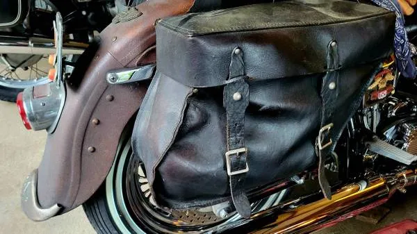 CALL/TEXT number shown in last pic. YES the ARE available Vintage leather throw over saddlebags Simple messenger style. Ive had these for 30 years. No damage, thick leather. Brackets included for most Harley-Davidson softail models. May fit other applications as well. $100 cash-o-la