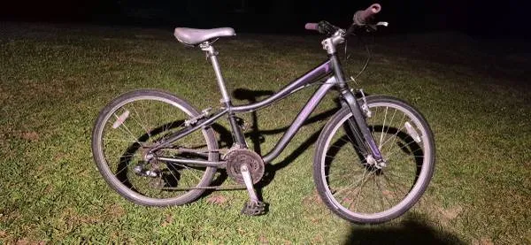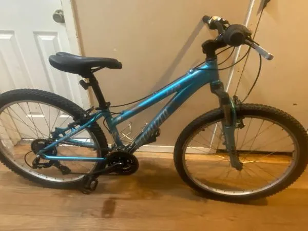 24 tires with great tread. 21 speed with 37 setup. Kickstand, reflectors, front and rear suspension, v-brakes, derailleur guard. Bikes rides nice. Asking only $75. Call or text 508-809-0659