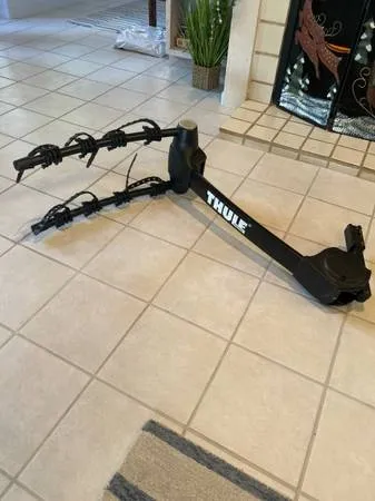 Hardly used Thule 4 bike car rack. In perfect shape. Works perfectly. Hitch adapter, so works with either size hitch. New 1 s sell for over $400. Text Steve at 678-401-9932.
