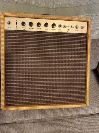 This amp is new condition, and never left the house. Sounds great and very loud. 1500.00 cash firm no trades. If the listing is still up the amp is avail, do not ask if its still available I will not answer. The all new Kendrick So-Lo 7 recording/practice/gigging combo amp delivers the unmistakable tone and the unique feel of a big amp, yet weighs only 22 lbs! The secret comes from the true push-pull design - like a Marshall or a Twin, but using a twin triode output tube (12BH7), which puts out 3.5 watts per side for a total of a full 7 watts. ***Note: There is also an extra tube socket that can accept an extra 12BH7 which will put the amp at a full 14 watts for small club gigs, should one desire more power. This optional extra tube is entirely plug and play and no adjustment is needed. Voiced to sound exactly like a Blackface Super Reverb amp but at a fraction of the volume and about a 1/3 of the weight, we have carried this to a new level by adding a Texas Tea control which can layer a Tweed tone on top of the default blackface voicing. Add just a little Texas Tea and you get that two-amp, Stevie Ray tone. Turn it all the way down and you have pure blackface tone. Turn it up and the tweed voice overshadows the blackface voice and you have pure tweed tone. For tonal variations on a theme, there is a three-way slider switch that goes between a stock voicing; a more compressed jazz voicing (slightly less gain with more compression) and a more cutting lead voicing (think British). Transformer driven, Tube/spring Hammond-style reverb is standard. This is the same circuit used on all blackface Reverb amps and includes an on/off footswitch. The on-board power attenuator can be used when 7 watts is too loud. It will go from the full 7 watts all the way down to off. A headphone output jack automatically disconnects the 12 Kendrick Greenframe speaker so that you can rehearse privately, without anyone else hearing it. You can actually use the built-in power attenuator as a headphone volume control, thus allowing you to turn the amp up and the headphones down. Unique 1/2 thick pine cabinet resonates much better than standard 3/4 pine used in almost a other amps. Leather handle, lacquered tweed covering is standard. do NOT contact me with unsolicited services or offers Gibson, Fender, Marshall