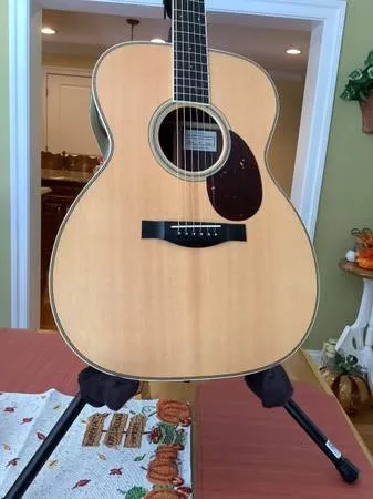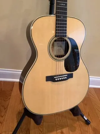 This is not the 000-28EC Eric Clapton model. This is the 30th Anniversary Model and are available only through March of 2026. I bought this new in July of this year. I bought it and have decided to sell most of my small body guitars. My loss is your gain on a new guitar. This guitar model, according to Martin will be available through March of ‘26 and then retired. I may have played it a total of an hour or so. It is the short scale of 24.9 , 1-11/16 nut , 2-1/8” width at12th fret, early 30’s authentic styled neck and OM 42 inlays. Per Martins website: Celebrate three decades of Eric Clapton’s legendary collaboration with Martin Guitar with the 000-EC 30th Anniversary acoustic. Available only through March 2026, this milestone model features solid East Indian rosewood back and sides and a solid spruce top for a rich, resonant tone, accented by fine herringbone trim and antique white binding. This limited-edition signature model is further distinguished by its genuine mahogany neck and Authentic 1939 shape, inspired by the pre-war Martin Eric played during his iconic MTV Unplugged performance. Not only does it offer a shorter scale length, but vintage-inspired touches include a slimmer nut width and Golden Era 42-style snowflake inlay on its ebony fingerboard, combining classic looks with effortless playability. Each guitar includes a paper label with Eric’s pre-printed signature, a printed certificate of authenticity to further commemorate our longstanding partnership, and a premium, embroidered case. It even comes strung with Clapton’s Choice phosphor bronze strings for his preferred sound and feel. 000-14 Fret body size East Indian Rosewood back and sides Spruce top Antique Toner Authentic 1939 with Standard Taper Top Material: Spruce Finish Top: Gloss Top Color: Antique Toner Top Inlay Material: Fine Herringbone Top Detail: None Binding: Antique White Bridge Material: Ebony Bridge Style: Modern Belly - Drop in Saddle Bridge String Spacing: 2 1/8 Bridge Pin Material: White Plastic Bridge Pin Dots: Abalone Pickguard: Faux Tortoise Pickguard Inlay: None Rosette: Fine Herringbone with Multi-Stripe Saddle: Compensated Bone Saddle Radius: 16 Construction: Dovetail Neck Joint Back Material: East Indian Rosewood Side Material: East Indian Rosewood Back and Side Finish: Gloss Back and Sides Color: Natural Back Detail: None Side Detail: None Back Purfling/Strip: Zig-Zag Back Inlay Material: Multi-Stripe Side Inlay Material: None Bracing Pattern: X-Brace Brace Shape: Scalloped Brace Material: Spruce Brace Size: 5/16 Heelcap: Antique White Endpiece: Antique White Endpiece Inlay: Multi-Stripe Neck Shape: Authentic 1939 Neck Taper: Standard Taper Neck Material: Genuine Mahogany Neck Color: Dark Mahogany Finish Neck: Gloss Scale Length: 24.9 Number of Frets Total: 20 Neck Joins Body At: 14th Fret Fingerboard Material: Ebony Fingerboard Width at 12th Fret: 2 1/8 Fingerboard Width at Nut: 1 11/16 Fingerboard Inlay Style: GE 42 Snowflake Fingerboard Inlay Material: Select Abalone Fingerboard Binding Material: None Side Dots: White Headstock Shape: Solid with 1939 Taper Headplate Material: East Indian Rosewood Headplate Logo Style: Authentic Script Style Overlay Headplate: Polished Tuning Machines: Nickel Open Gear Knob: Butterbean Nut Material: Bone Case: Hardshell Label: Paper Label w/Pre-Printed Eric Clapton Signature, Numbered in Sequence w/No Total Pleked: true Travel to Martins Website for any info I might have left out ,, the polished headplate really adds to the overall beauty of the guitar as well as the Herringbone body and rosette inlay. Great fingerpicking guitar. Might consider best offer or trades for other higher end or old Martins