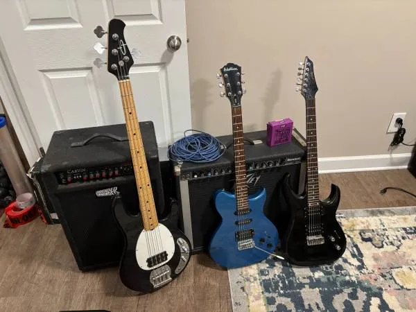Entering Covid lockdowns I was convinced Id have ample time to learn bass and electric guitar. Yeah, that never happened. Selling everything. Need to declutter. $600 for everything - OR buy all the bass stuff together for $450 - OR buy all the electric stuff together for $350. Sorry --- no plans to part it all out yet --- amps and guitars are being sold together. Bass guitar combo @ $450 Carvin Pro Bass 200 (PB200) bass amplifier DP Custom / Dave Pushic customs 4-string bass guitar Electric guitar combo @ $350 Peavey Renown 115BW Solo Series guitar amplifier Washburn Wi21 6-string electric w/tremolo Arbor 6-string electric (missing tremolo) Spare Ernie Ball custom gauge strings Think my prices are too high? Cool, shoot me an offer with a damn good reason why! Im a reasonable person, but if youre kicking over a lowball offer @ half my ask price, dont expect a response. eBay and Reverb is chock full of pricing data on recent sales, and Im pricing everything at 30-50% less than average of what I found. Everything works, heres some notes on stuff. Daves basses from this era go for way more than Im asking. It could use new strings, it has cheapies from Amazon on it that are showing signs of poor quality with age. Amp drivers are in superb shape, all of my stuff has been stored inside my climate-controlled house. Previous owner of Peavey had it professionally recapped and pots cleaned. It has the original bulletproof BW driver which is already updated to remove the infamous foam of death thats known to gum up the VC. I bought the Arbor electric w/whammy bar missing as a project guitar, the bridge looks sketchy (to me but Im not a pro), it technically works, but being tossed in AS IS. The Washburn supposedly wasnt sold in the N. American market, its in great condition. LOCAL SALE ONLY. IF YOURE READING THIS, YES, THESE ITEMS ARE STILL AVAILABLE.