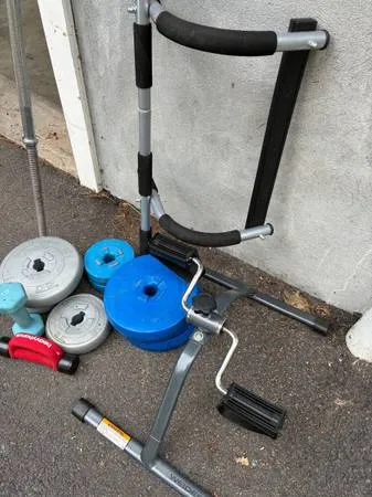 Exercise equip: w 8 s, bike pedal, etc ALL the items in the picturesexcept chin up barfor $30 Click more ads by this user buttonupper rightfor more items for sale. Cash only. For a quicker response, please text me the day and time at 914-222-1180 to coordinate pickup in Bedford HillsNorther Westchester, not NYC.