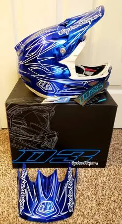 In great condition Troy Lee Design D3 Helmet. This is the coveted blue pinstripe helmet that sold out when it was released. You will get compliments every where you go. Comes with original TLD box that it came in with another extra new visor. Size Large Clean as the interior was hand washed Emails without your phone number will be ignored. If you have a trade send me what you have with pics and details and how much cash to make it fair. Any questions will be answered via text or phone call. Low ballers, offers, and emails without your phone number will be ignored. Thank you Open to trades for mountain bikes downhill parts armor helmets mtb pads knee protection bike accessories
