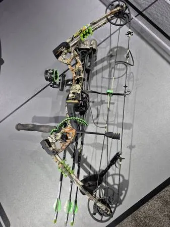 70 pound max 31 inch draw max Super adjustable compound bow. Trophy Taker drop away rest. Trophy Ridgewuiver and stabilizer. Smooth slide cable slide. Black Mountain nicro adust sight. 3 arrows and release. Bow is hunt ready. Will come with 3 practice tips. And 3 rage broadheads Call or text Jim 5seve3 sixthree1 0oneseven3