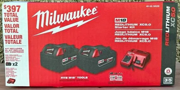 New in box Milwaukee M 18 battery kit with 2 xc 5.0 and charger sell for $150 bo. call John 8 am-8 pm 774-565-0293