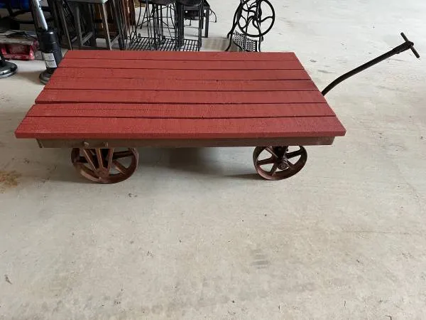 Antique Luggage Cart, in excellent condition. Measures 62 x 38 x 18 tall. The front wheels are 12 diameter and rear are 14 diameter. Handle can be removed Cash or Venmo Must pickup, Center Point 78010, between Comfort and Kerrville. $400.00 If interested please text 832-441-4442