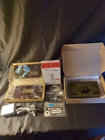 Nintendo New 3 DS XL Zelda Majora Mask Bundle Hyrule / Majora / Breath of the Wild. Excellent Cosmetic Condition with No Screen Scratches or Damage and Original Charger Adapter and Stylus. USA Model . US Version RED-001 with an Additional New Sealed Battery and Brand New Official Nintendo 3 DS XL Charger Adapter Sealed in Box Including Brand New Legend of Zelda Breath of the Wild Protective Hard Case. I can be reached at 678-801-6270 , Vince .