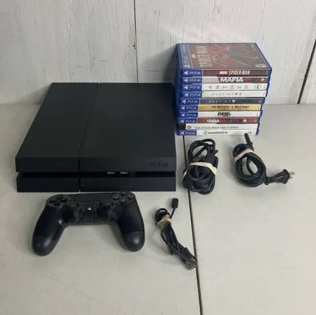 Sony PlayStation 4 PS4 500GB Console CUH-1215A, includes Controller Bundle 10 games Includes: marvel Spider-Man, the Witcher 3: wild hunt complete edition, Mafia iii 3, anthem, destiny 1 & 2, super street the game, NBA 2K 14, call of duty Black ops 3, EA sports Madden NFL 16. All discs have been inspected and resurfaced as needed. Includes black OEM controller