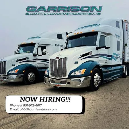 employment type: full-time CDL Drivers Dedicated route SLC to CA Salary Position 4-5 Day work week. Do you think, feel and drive like an owner operator? You take care of us, We take care of you! Join the G-Team and become part of our family! We also offer • Late model, Low Mileage T680KW’s & 579 Peterbilt’s Assigned Equipment no slip seating. • Weekly Pay • No layovers • Medical/Dental/Vision/Life Insurance • Company Matched 401K Retirement Plan • Sign on Bonus • Safety Bonus • Yearly Bonus • Pets Welcome • Flexible dedicated routing • 90% of our loads originate and return to our dock • Guaranteed annual raises • Clean inspection bonus check us out at www.Garrisontrans.com