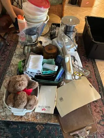 SOLD MY HOUSE & HAVE TO CLEAR OUT WHAT REMAINS. NO REASONABLE OFFERS REFUSED. DEALS MADE! Glass top table $10. Black Metal TV or utility Stand $10 . Comic Books . Household leftovers. Western wall hangings $25 Landscape materials $1, , Lots of Garage Leftovers, Heavy Duty Tie Down straps. Poker Chips & Playing cards, Lots of unopened boxes perfect for gifts. Sofa throw pillows HEARTLAND MUG $12. Make America great again MUG you are the best girlfriend cup. 11 ounce heat sensitive mug. $12. NO SIGNS POSTED or SET HOURS so CALL AHEAD or RING DOOR BELL dates:saturday 2025-12-13 sunday 2025-12-14 monday 2025-12-15 start time: 11AM