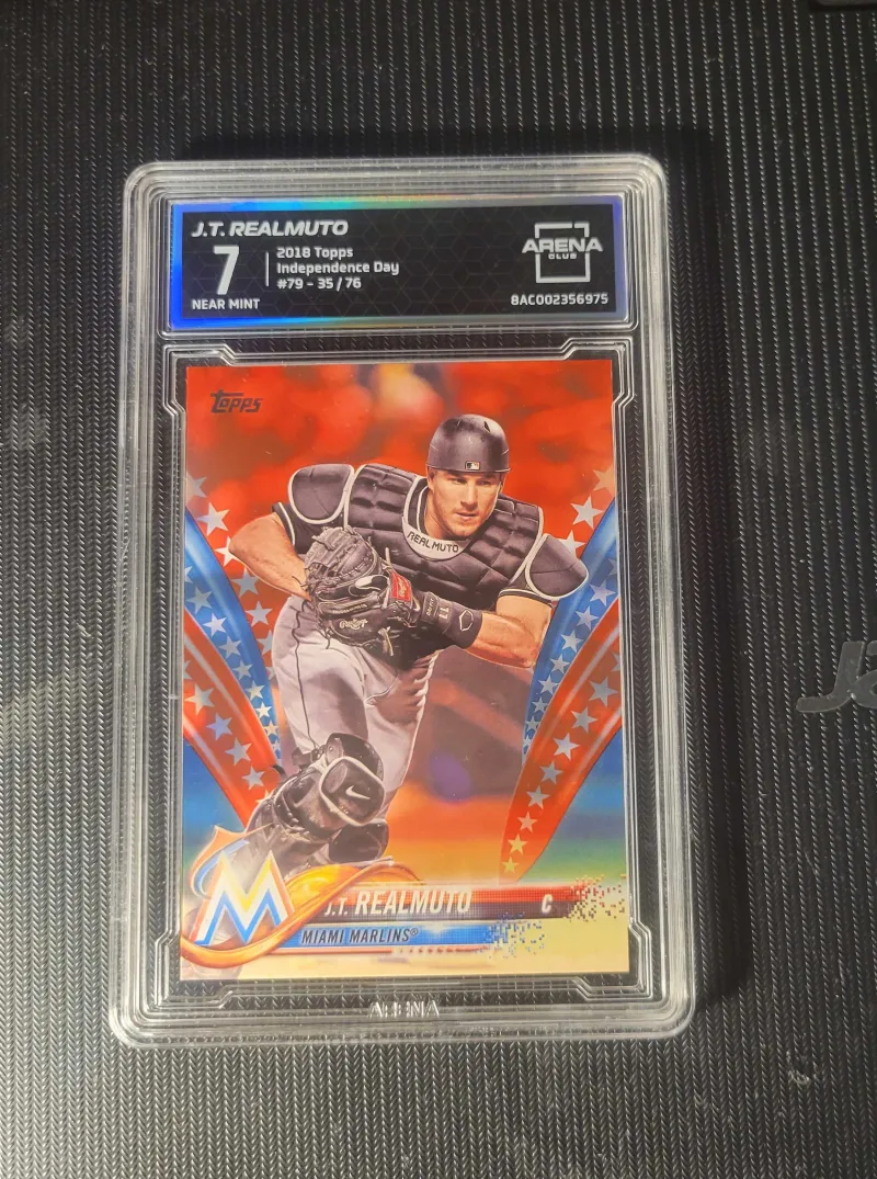 2018, Topps, J.T. Realmuto #79, Independence Day Parallel, Serial Numbered (35/76) Graded 7 (NM) Near Mint Condition