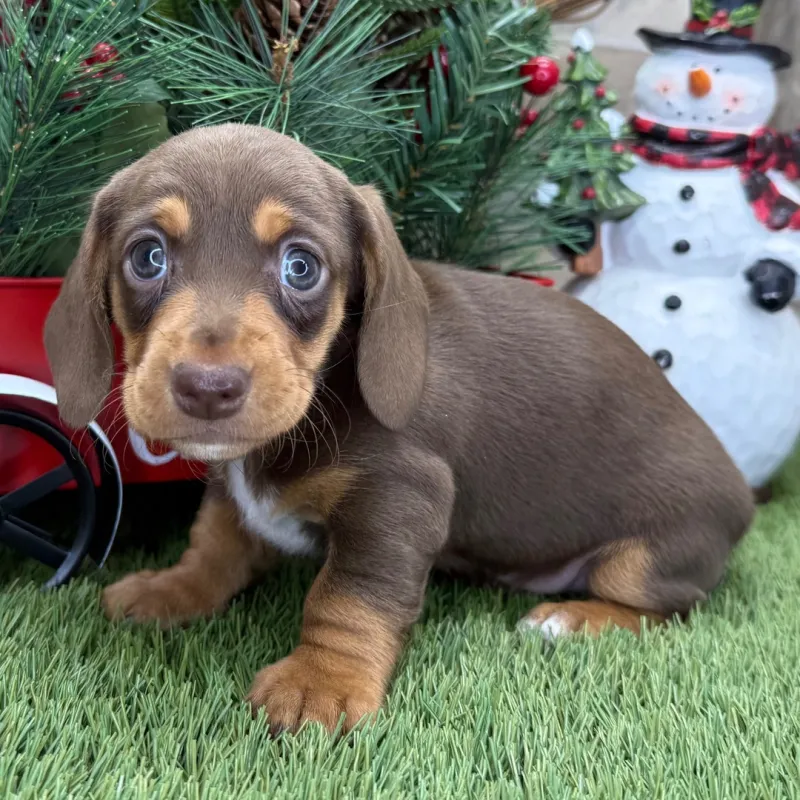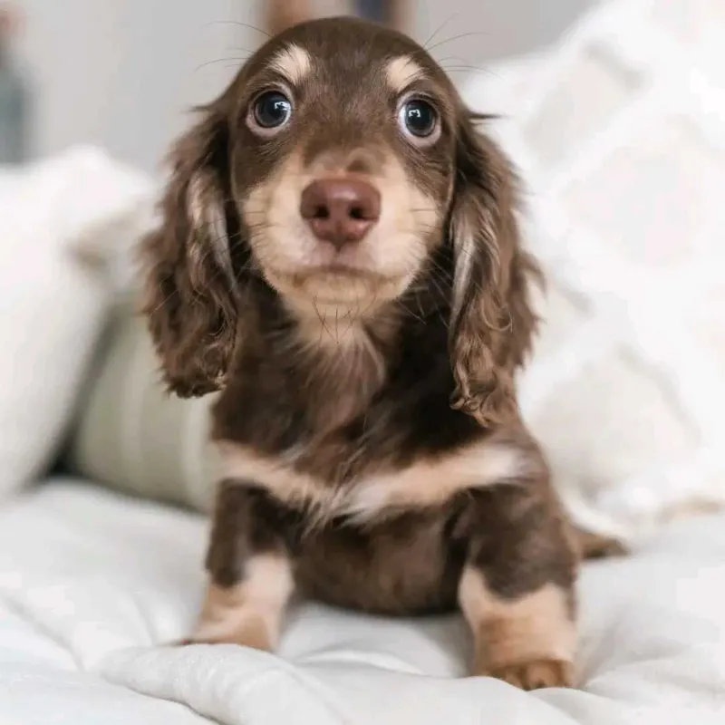 Hi, I'm Glitter! Hi, I'm Glitter! I'm a 6-week-old female Dachshund with a beautiful chocolate & tan coat, born on October 24, which makes me a Scorpio sign. I'll be ready to go home to my forever family after December 19, once I'm grown enough to leave my litter. I'm AKC registered. With me you'll have the time of your life and feel a love like never before.