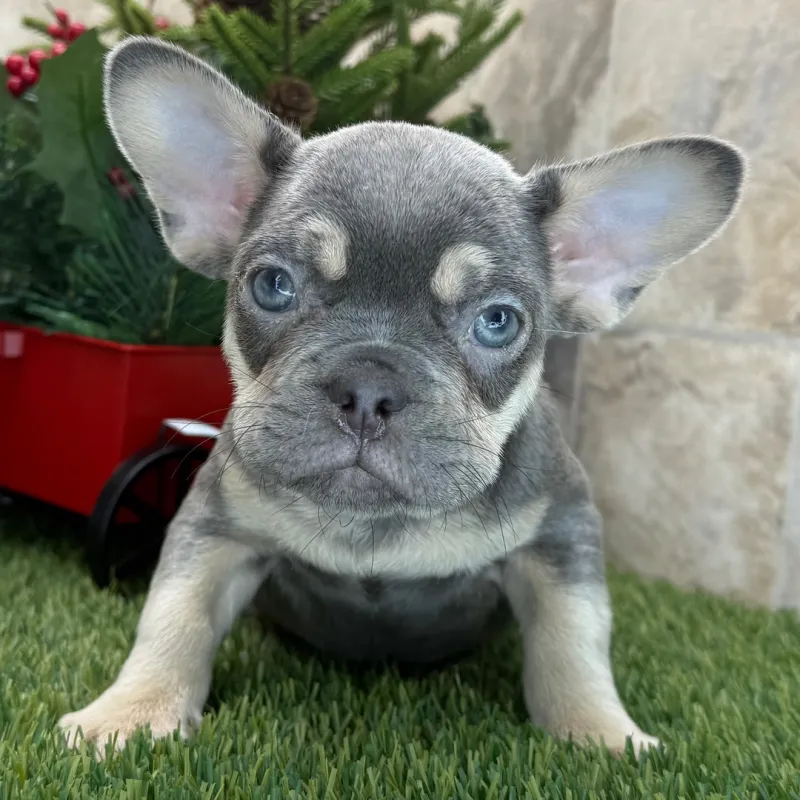 Hi, I'm Beamer! I'm a 10-week-old male French Bulldog with a beautiful blue & tan coat, born on September 26, which makes me a Libra pup. I am ready now to plan my trip to my forever family. Once I reach my adult size, I'm expected to weigh between 22–30 lbs. I'm AKC registered. My little paws are itching to meet my forever family.