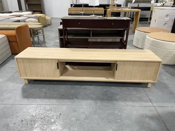 Brand New Reema Arundo Reeded TV Stand Supports TVs up to 80” Dimensions 70” L x 15.75” W x 16” H Located in Noblesville Just north of Costco next to Indy Premier Soccer Come on in! NEW ADDRESS DC Home Supply 9665 E 153rd St Noblesville, IN 46060 We are at the warehouse Monday -Wednesday and Friday 9:00 AM-5:00 PM Thursday 9:00 AM-7:00 PM and Saturday 10:00 AM -2:00 PM