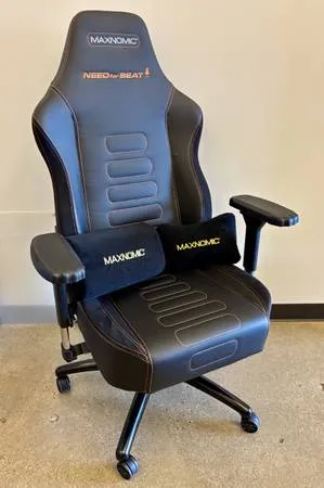LARGE MAXNOMIC Dominator Black Computer Office Gaming Chair - Need-For-Seat! This premium quality office and gaming chair is the perfect fit for people with a weight of up to 220 lbs and a height of 55 to 61. The Dominator Black chair is the preferred choice for anyone whos looking for a subtle black look but still likes the lighter stitching accents. Like all other MAXNOMIC® models this chair is built to last! Its metal steel frame is enclosed by our custom-molded cold cured foam for maximum sitting comfort. We use durable PU leather for the chair cover. An ergonomically shaped backrest will demand a healthy posture without compromising comfort. All chairs come with heavy-duty parts which include an aluminum chair base, a class-4 cylinder, a heavy-duty tilt mechanism, and sturdy 4D adjustable armrests. Will include head pillow and lumbar support. Chair is in perfect, clean, no tear condition. Smoke-free! Pick up Downtown on N 4th St. near 670 on-ramp. Cash or Venmo only.