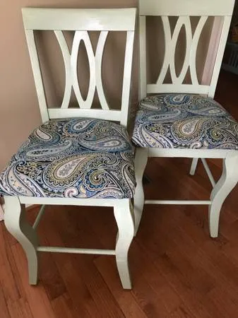 2 All Wood Upholstered Seat Bar Stools or High Top Stools Chairs Two high top stools. Pair of high top stools. Two bar stools. Pair of bar stools. 22” L x 17” W x 40.5” H Newly upholstered; Not used since upholstered. Please do not provide phone number or email address. I will not ask for it and will not provide mine. All communication will be through Craigslist. Painted furniture. Painted chairs. Painted bar stools. counter bar stools | counter stools | counter height bar stool | counter height stools CLSID-048