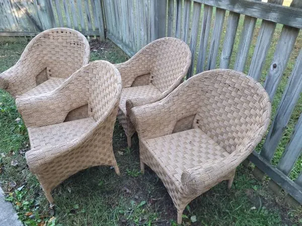 I have for sale 2 tan wicker outdoor chairs like new $150 for both . Text 443-865-3313