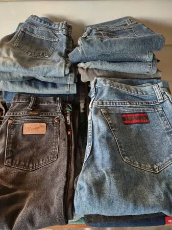 I have about 40 pair of jeans some never been worn but about 10 years old. Some vintage , new and worn. Sizes from 28 by 32 to 32 by 30. Most of them are $10 but about 8 pair are $20. If you are interested in seeing them, call or text after 1pm. Thanks lori