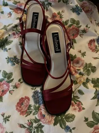 Womens red satin dress shoes NO EMAIL PLEASE CALL 410-385-0267